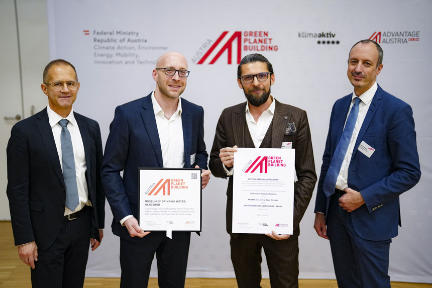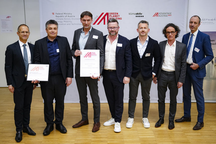 Die Awards wurden im Dachverband der Sozialversicherungen von hochrangigen Vertretern der Initiatoren des Austrian Green Planet Building® vergeben: Jürgen Schneider (Bundesministerium für Klimaschutz, Umwelt, Mobilität, Innovation und Technologie) und Patrick Sagmeister (AUSSENWIRTSCHAFT AUSTRIA) überreichten gemeinsam die Awards an insgesamt 14 Projekte und die daran beteiligten österreichischen Unternehmen.