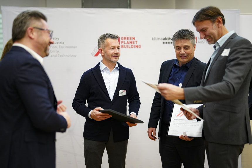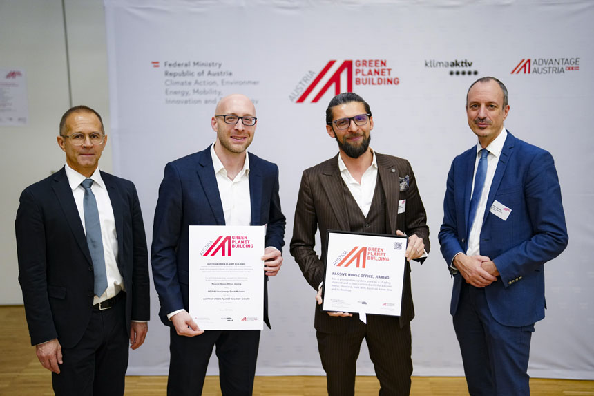 Die Awards wurden im Dachverband der Sozialversicherungen von hochrangigen Vertretern der Initiatoren des Austrian Green Planet Building® vergeben: Jürgen Schneider (Bundesministerium für Klimaschutz, Umwelt, Mobilität, Innovation und Technologie) und Patrick Sagmeister (AUSSENWIRTSCHAFT AUSTRIA) überreichten gemeinsam die Awards an insgesamt 14 Projekte und die daran beteiligten österreichischen Unternehmen.