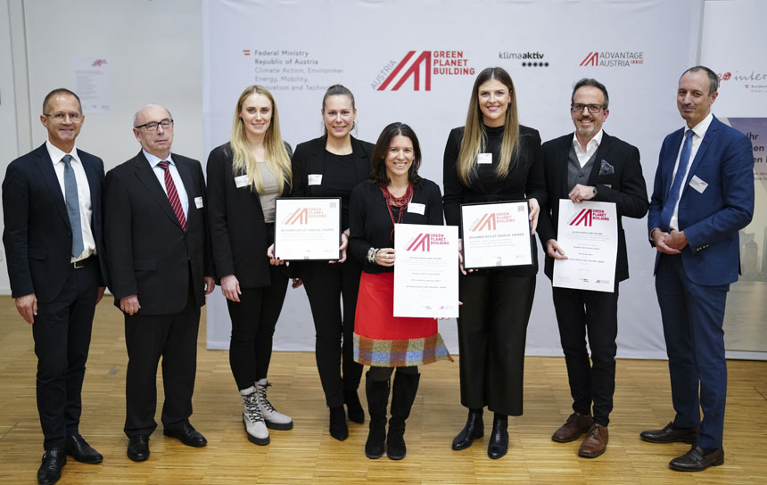 On November 30, 2022, the Austrian Green Planet Building®Award was handed out to those Austrian companies that played a key role in sustainable construction projects abroad. Whether high-rise building, office building, supermarket, bank, coffee roastery, museum, church, airport, outlet store, electronics store, residential or tourism building - all projects have a focus on future-oriented construction and planning services.
