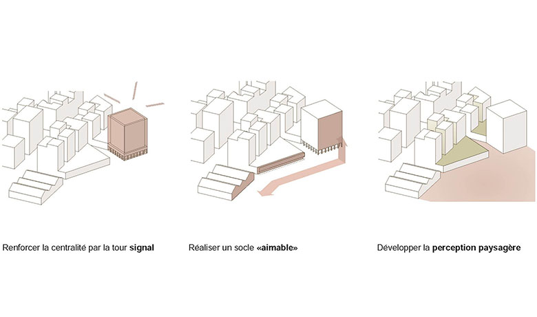 The building ensemble itself consists of 76 per cent timber: the entire superstructure from the ground floor upwards, apart from a concrete core for the traffic routes, was constructed using prefabricated timber modules. This shortened the construction time while at the same time reducing the amount of waste produced. Terracotta panels tie in with the local colour tradition of the "ville rose" and form a double façade skin at the height of the arcades and the traffic routes of the tower, as well as in front of the loggias of the flats. The building ensemble is heated by the city's local district heating system, which is largely supplied by the waste incineration plant. A PV-system of around 120 kWp provides green energy on the property.